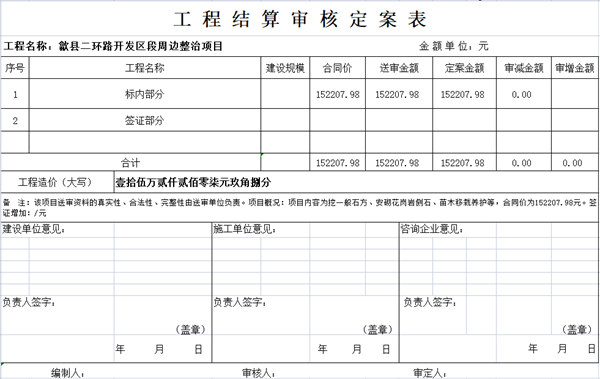歙县二环路开发区段周边整治项目结算审核定案公示
