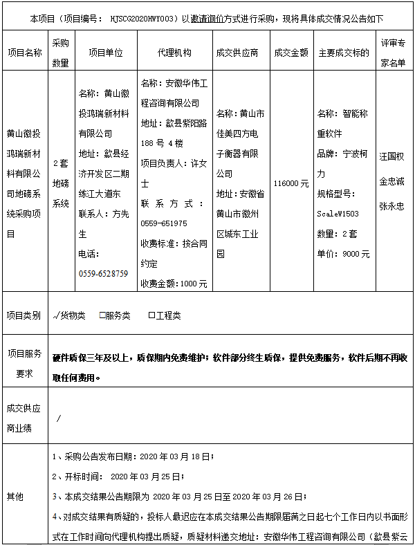 黄山开云中国鸿瑞新材料有限公司地磅系统采购项目成交结果公告
