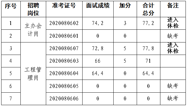 根据《开云app入口站官网招聘考试公告》,面试工作已于2020年8月8日结束,现将考生的成绩予以公告: